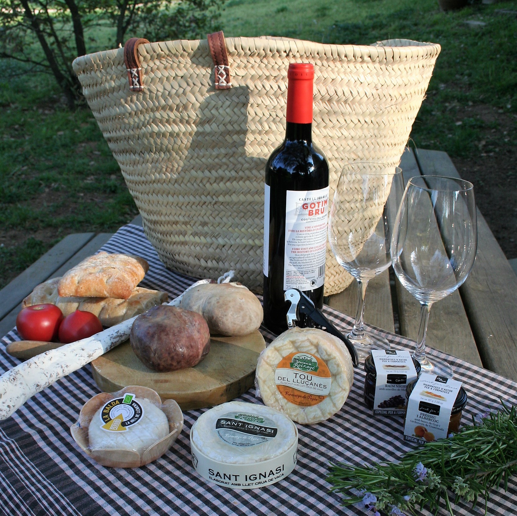 Si us ve de gust fer un pícnic (romàntic o no) a la masia de Can Tomàs Bassa, respirant aire pur, us deixarem un cistell amb una ampolla de vi (blanc, negre, rosat, escumós), pa artesà, tomàquet de sucar, formatges i embotits artesans, i una selecció de fruits secs de postres.
