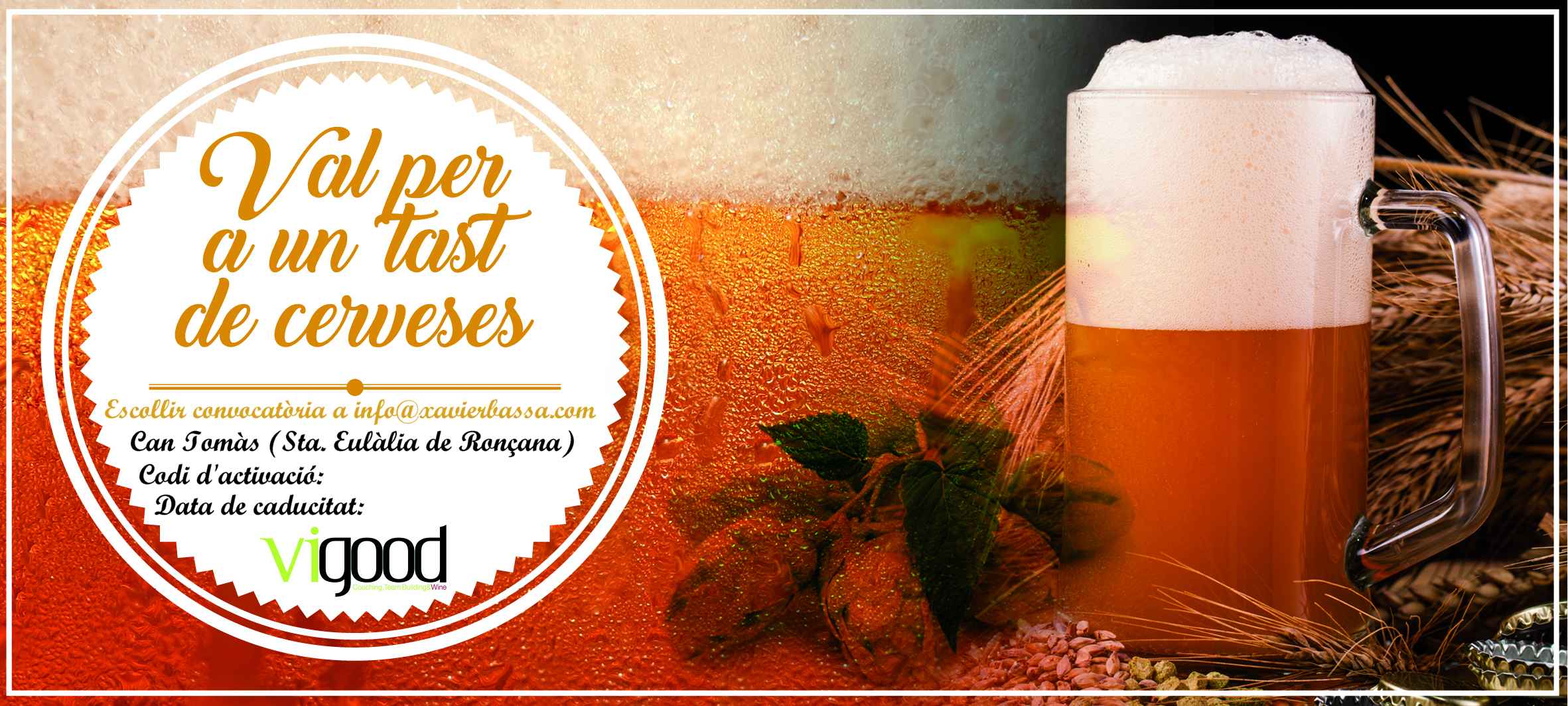 Un val per una iniciació al Tast de cerveses, amb un cost de 120 € per parella.