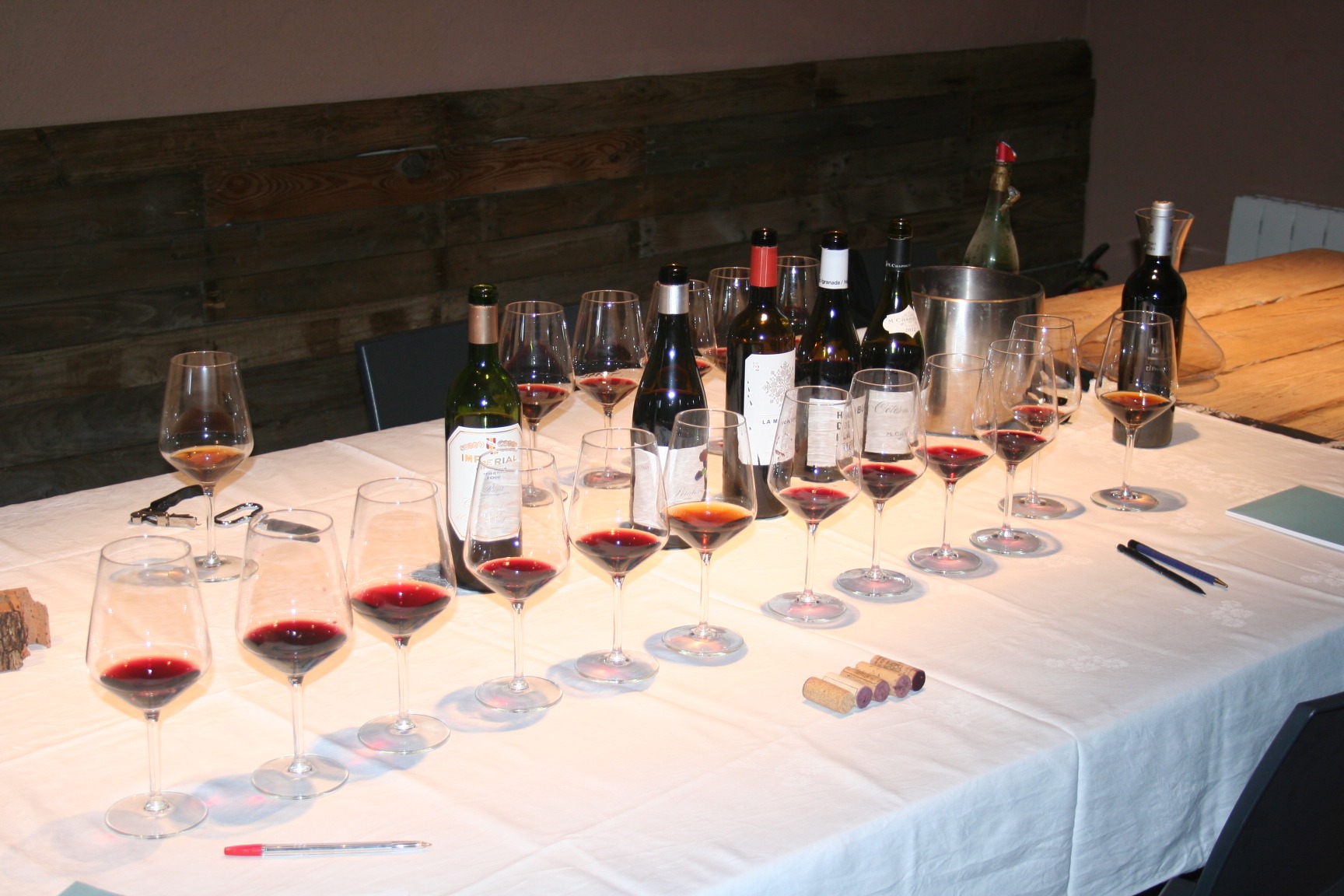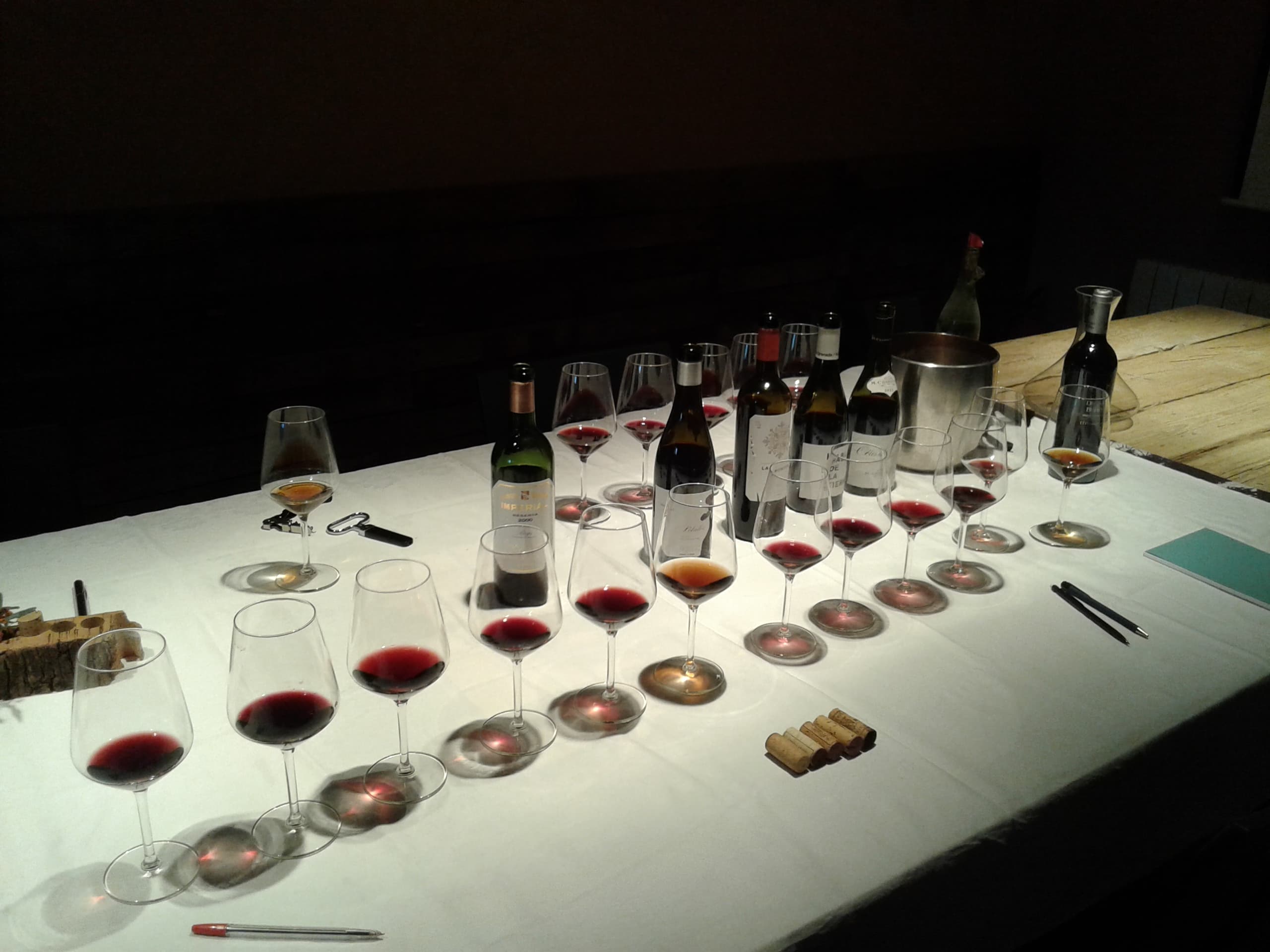 I acabada la teoria passem a la part pràctica del tast de vins, on es tasten dos vins blancs, dos vins negres i un cava.